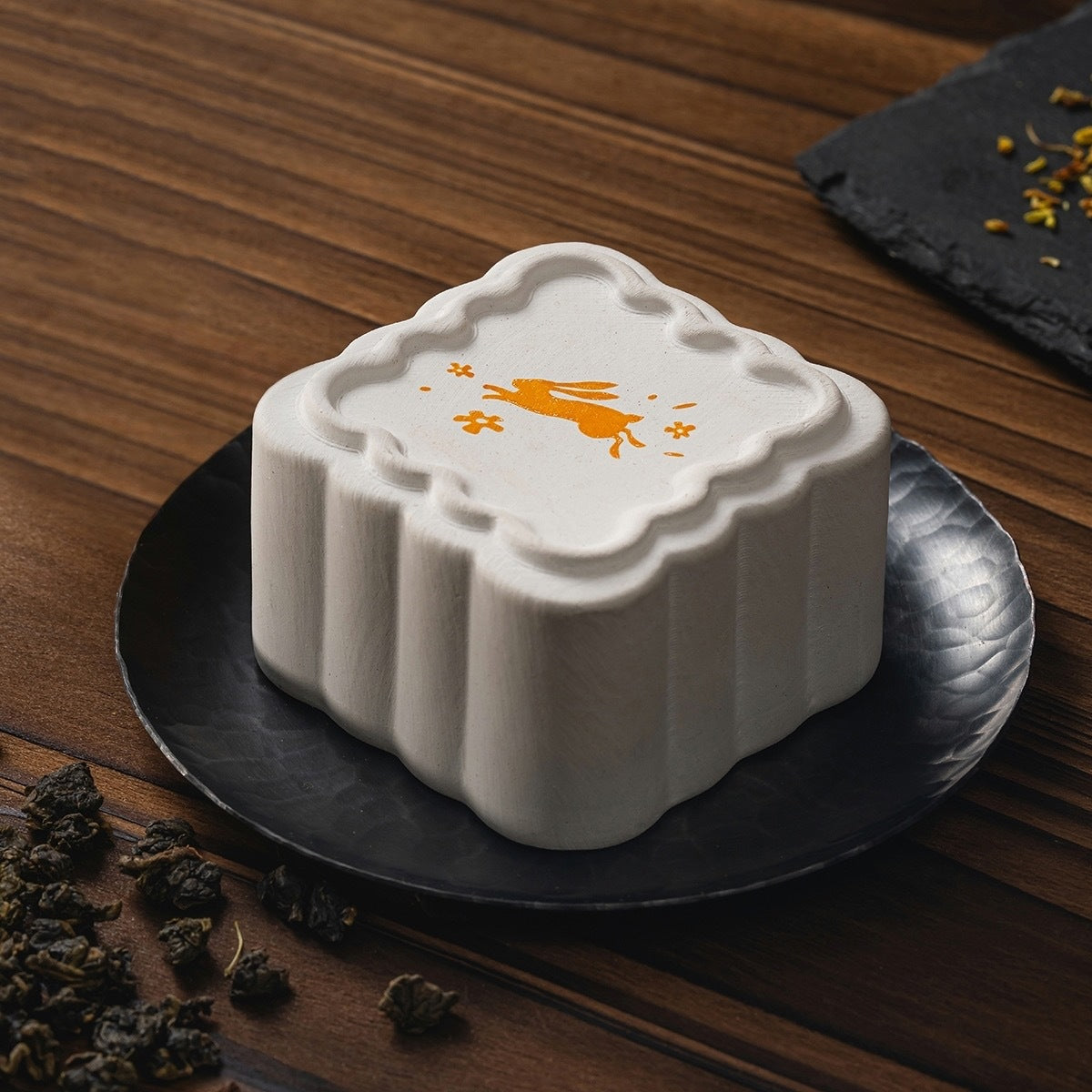 以中秋節經典廣式月餅糕點造型為靈感,立體浮雕搭配玉兔高升圖騰,為今年中秋帶來充滿寓意的季節禮物。小農合作| 柚香青茶